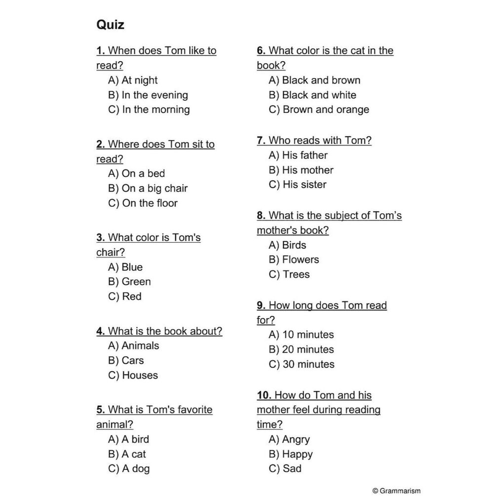 ✅ Comprehension Questions – 10 multiple-choice questions per worksheet.
